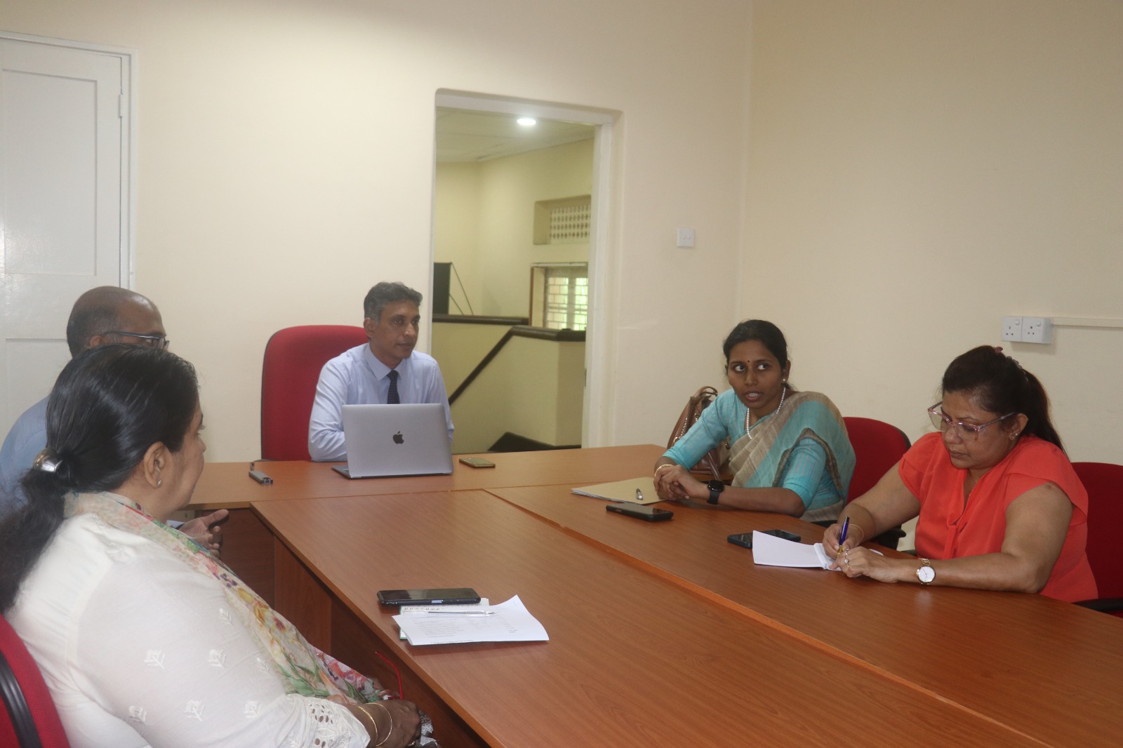 During the meeting, Ms. Saranya also introduced a new proposal under the project “Sanskrita”, aimed at digitizing historical manuscripts in South Asian countries. In response, the Director/InRO suggested collaboration with the Department of History, leading to an immediate discussion with Prof. Hettiarachchi and Mr. Mahesh, who were called in for the purpose. The proposal was warmly welcomed by the Department, and Ms. Saranya assured that she would follow up with a formal email to the University and, upon receiving Faculty approval, arrange a virtual meeting to move the initiative forward.
